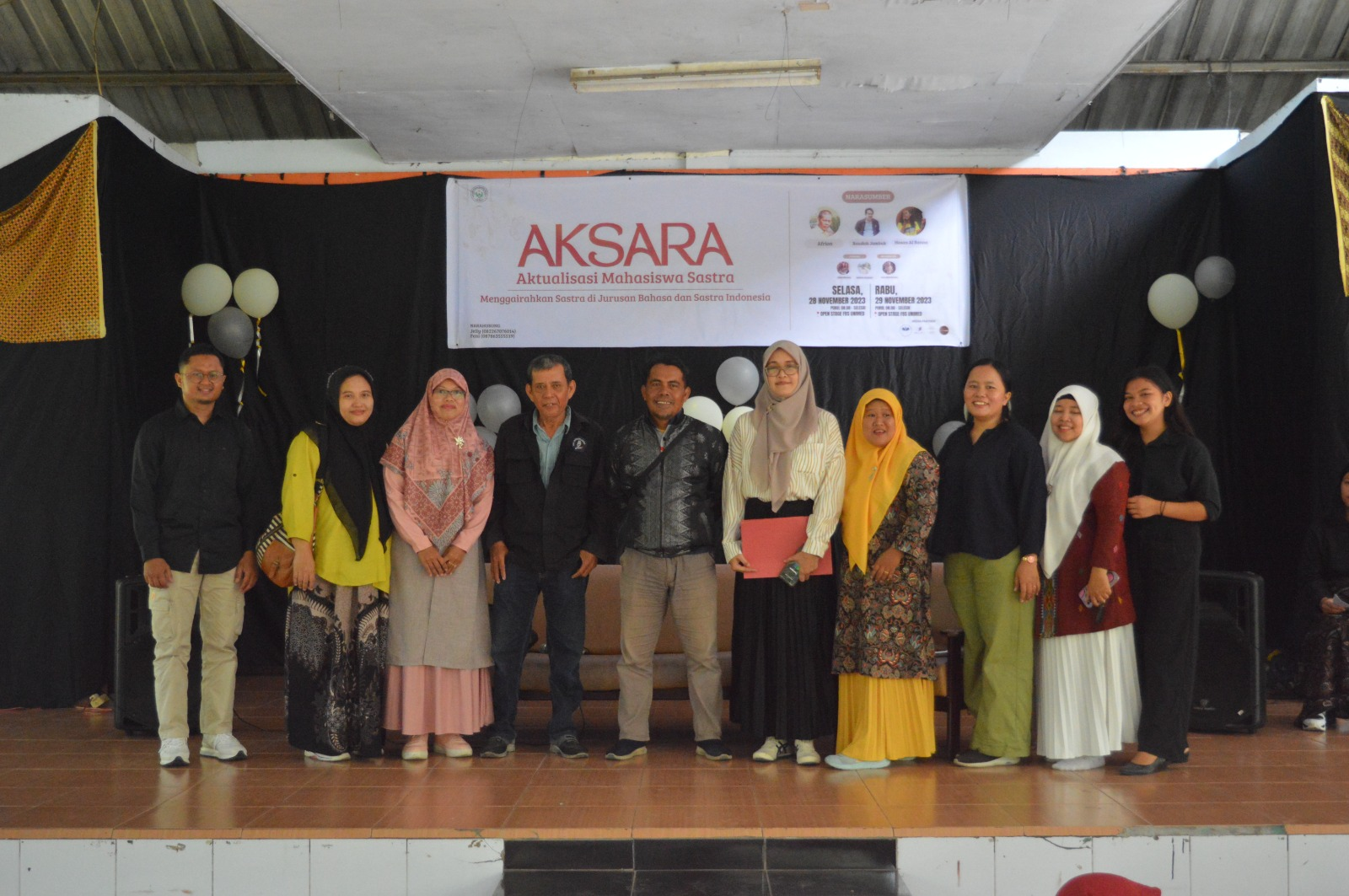 Prodi Sastra Indonesia (FBS) Unimed menggelar kegiatan Aktualisasi Mahasiswa Sastra (AKSARA) yang digelar di Open Stage FBS Unimed dengan tema Menggairahkan Sastra di Jurusan Bahasa dan Sastra Indonesia pada 28-29 November 2023.